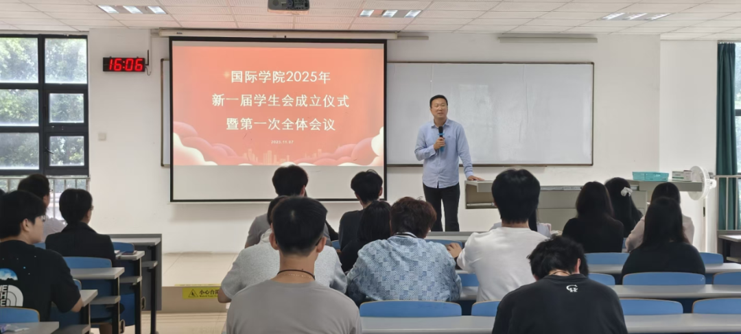 国际教育与培训学院2025年新一届学生会成立仪式暨第一次全体会议于11月7日在求是楼QA304隆重举行。此次会议不仅承载着学院的深切期望,更凝聚了国际学院学子们的满腔热忱。院领导、学生事务办公室主管以及各班班主任,与全体学生会成员一同见证了这一具有里程碑意义的重要时刻。